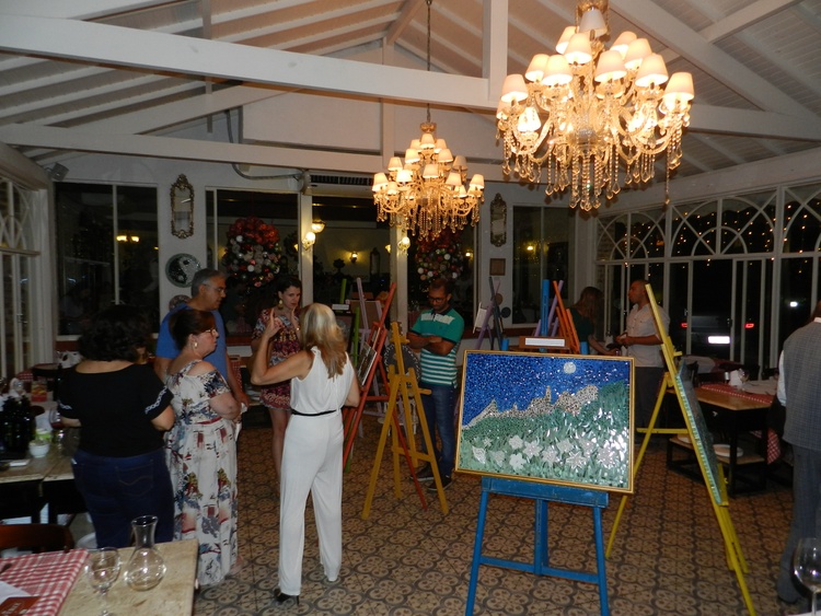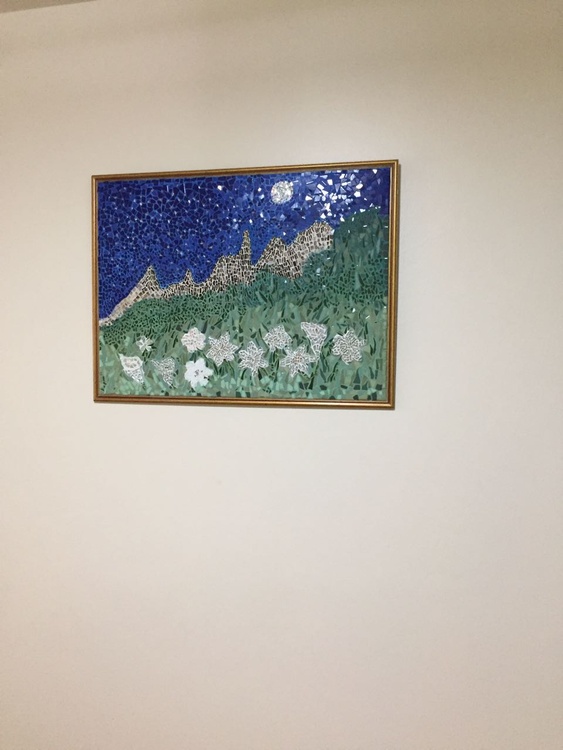 The Finger of God mountain night with lilies symbolize peace (Mosaic made of marble, glass and ceramics 85X64 cm) Part of the "symbols Colections
