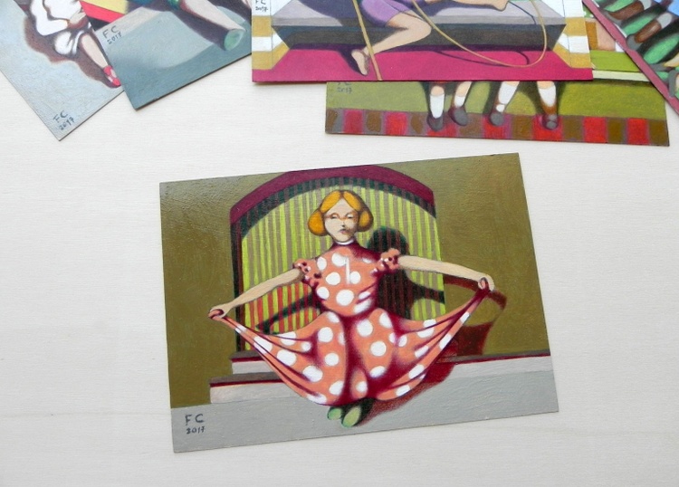 Oil on paper, 21 x 15 cm, 2017. Memories from childhood. Finishing: protective gloss varnish (transparent mastic paint). Location and year created: Turin, Italy - 2017. Signed on the back. In case of sale shipping is worldwide free.
