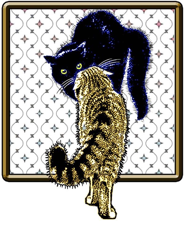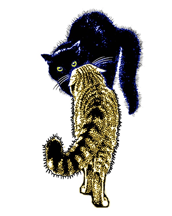 Cats never fight over race relations or politics except in over-liberal cartoons, but the emotional energy involved before the action starts is theater worth capturing in art or illustration.