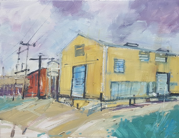 "Warehouse" original en plein aie oil on panel paint in Marble Fall, Texas 11"x 14" $ 580.00