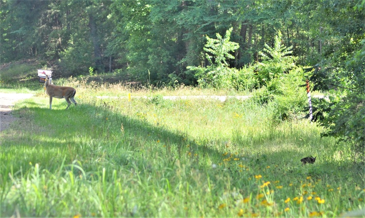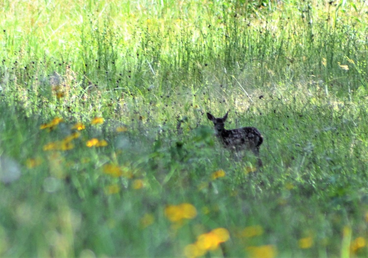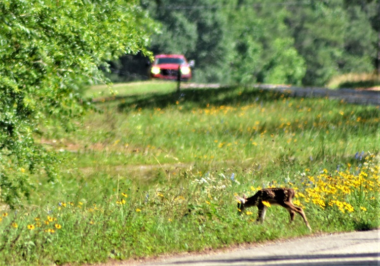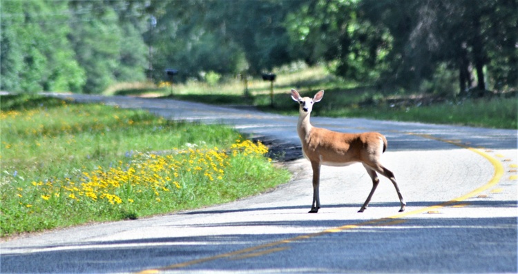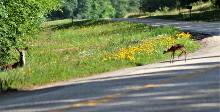 A tale with a happy ending took place very close to my dad's old home in deep east Texas. On Memorial Day, I literally went down memory lane and captured images of a spotted fawn nursing in the shade and then, after much waiting and demonstration by the doe, teetering on wobbly legs up the embankment and finally, crossing the blacktop road to disappear into dense woods. It was only seconds before a vehicle came down the same road and I breathed a sigh of relief. A video would have been nice but I will post part of the 27 images taken during this five-minute-long saga.