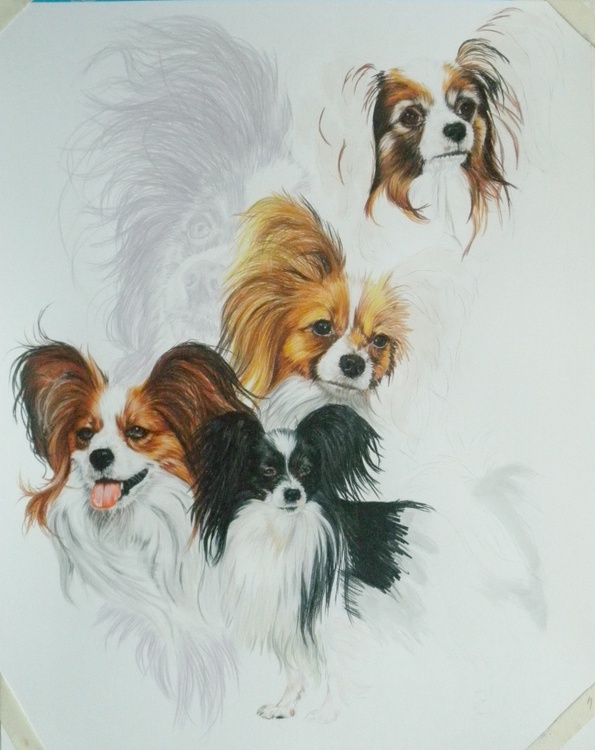 A tiny dog, measuring 8 to 11 inches at the shoulder, you can still spot a Papillon a block away thanks to the large, wing-shaped ears that give the breed its name (“papillon” is French for “butterfly”). Some Paps have erect ears; in others, known as the Phalene type, the ears are down. Paps are dainty and elegant, with a plumed tail, and a long, silky coat of several color combinations, the base color being white. More robust than they look, Paps are little dogs for all seasons and reasons. They thrive in warm or cool climates, in town or country, and are eager to join family fun. They are excellent agility dogs and are consistent winners at the sport’s highest levels; less ambitious owners can train them to do all kinds of tricks (akc.org).