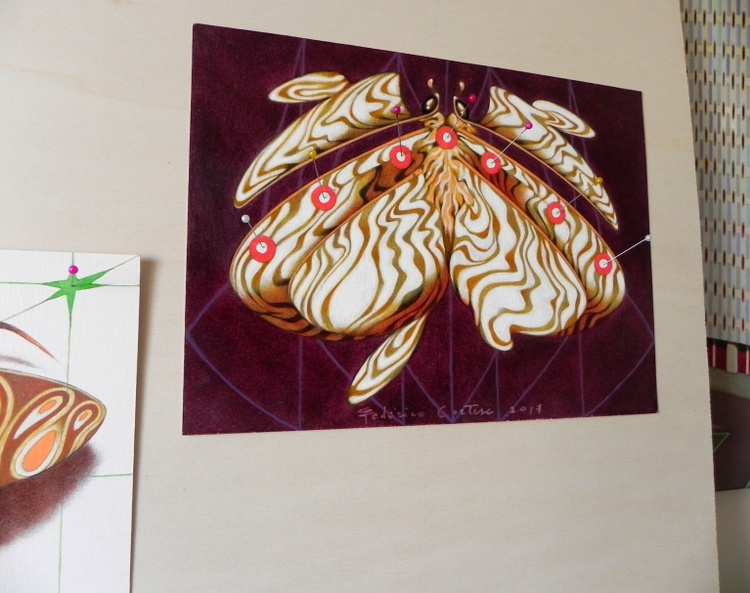 An original piece from the series “Please do not kill butterflies”, pins and oil on paper, 30 x 22 cm, 2017. ORIGINAL SOLD. Please, all these dead animals ... Of course, not everyone of us can or want become vegetarian. Sure, in some cases, maybe, the medical experimentation needs them to get results. But we really have to kill them for our frivolous activities? ... Is it necessary to have so many pink pigs die in front of a camera? Do we really need to dissect sharks in formaldehyde, to starve stray dogs tied to a chain in the corner of a gallery, or to make innocent ants go crazy in twisted tubes of plexiglas? To make these drawings, no butterfly was killed. Some details on the painting: this piece is made with oil colors on thick paper (paper weight: 290 gr/mq; the surface of the paper is rough). The painting is mounted on a wood panel. The finishing of the painting is made with protective gloss varnish (transparent mastic paint). The painting was made in Turin - Italy, in 2017. Certificate of Authenticity is included, with signature of the artist on photograph. The painting is signed on the front bottom center. FREE SHIPPING WORLDWIDE!