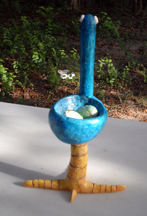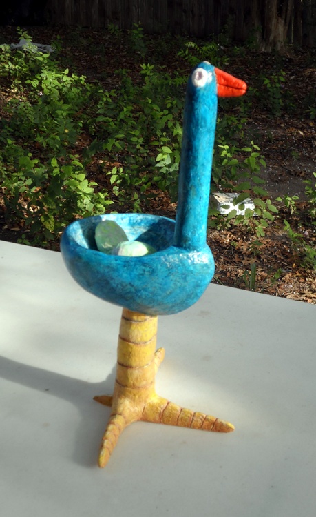 In October of 2006, I did a similar piece that a 3rd grader christened 'The Love Bird.' I thought I'd try my hand at a larger version with the new formula. It is approximately 15.5 inches tall. I am gearing up for a 3D show in the fall so more Original Jones Art of the three-dimensional variety is required here in Austin, Texas.