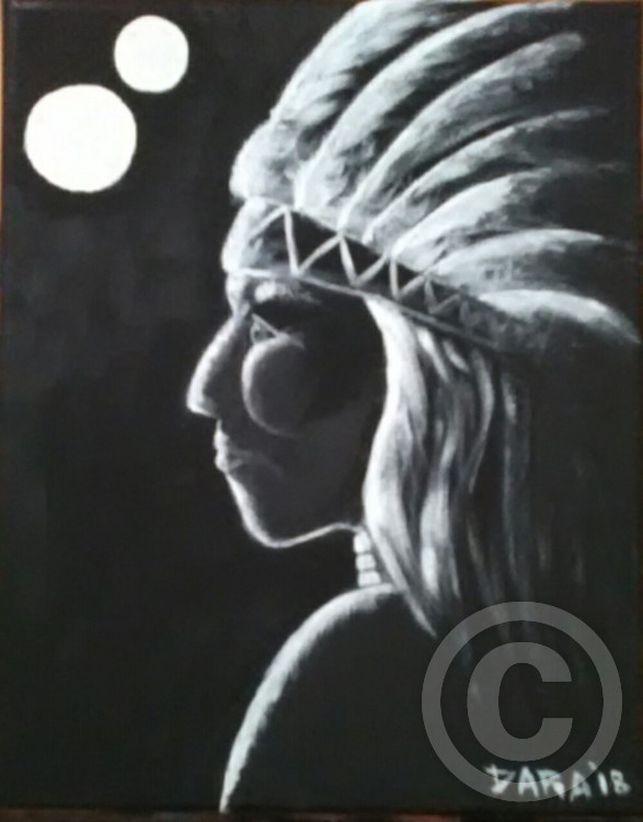 Artist Reply: Just saw this comment! Have not got notices for comments for some reason and I have not logged in in a while. Thank you! _es, I wonder about the Two Moonthing too..possible there were two moons at one time going by what they say and the shape of our moon. In the context of Chief Two Moons name, they got their names in various ways, and could be symbolic. I am a professional Indian Historian as well, over 45 years and to most Tribes, a moon is one month, two moons two months,etc so not sure how he Gothic name as I have not seen any reference to it. That information may be lost.
