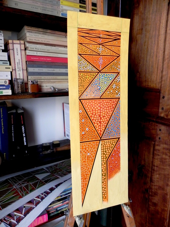 An original piece from the series “Carpets”, ink on paper, 20 x 60 cm. These drawings are made with a thick texture of thin lines, and they want to remember, in the form and appearance, the patient and methodical work of weaving with the loom. The drawing comes out from the plot of crossed wires. The repetitive and automatic work becomes almost a mantra, a prayer. In case of sale shipping is worldwide free.