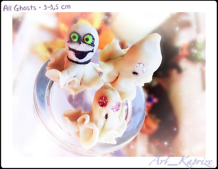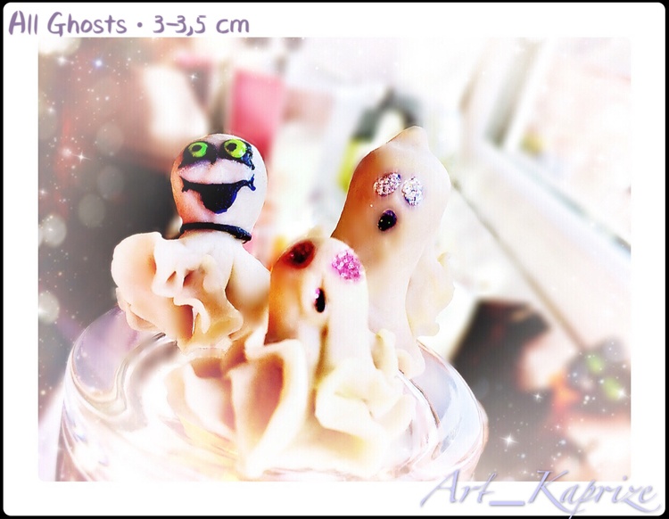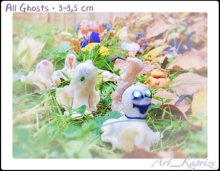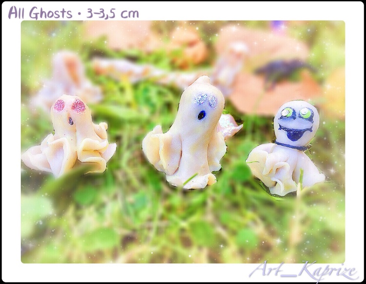 - Otherworldly powers and spirits are one of the main attributes of the Halloween festival, casting (glow in the dark due to fluorescent materials. - This little cuties is about 3-3,5 cm tall It was painted by hand with acrylic paints and finished with a coating of strong professional sealant and varnish in three layers. You will get exactly the same as in the photo ?? - Figurine will appear on your doorstep in a carefully packed box. - Figurines, talismans, Mascots Handcrafted with polymer clay inspired by “Kaprize”. Me as Master of Figures inspired and eternally in love with Life gave me the opportunity to create magic in reality. - Please Welcome to My Little Gift Shop "Kaprize" - I'm inspired by your Visit, I'm glad that you found your way here through many uneasy and twisty paths of thee Internet Universe* Please Enjoy viewing my Creations. All Figures, Statutes and Talismans are carefully created in My little World of the Kingdom of Britons. In a room corner where sunlight is falling in the mornings, Like the Blue Bird of Happiness, I create For You Happy Reminders of Moments in Life, which you prefer to bestow upon yourself and your Beloved because of My Creations. I am pleased to serve you in this Business???? - If you are interested to proceed further to the Depth of My Magical Kingdom, I will be happy to show you the path to my blog "Kaprize Arts Studio" on Patreon. As soon as my world of inspiration is formed, changing and acquiring Charm, you can watch the updates and find out more information by clicking on the "I like" button on ??the «Kaprize OU» page or on my «Kapitanova Anna» personal page on the site Facebook, and also be sure to check in Instagram: "Art_Kaprize" and I wish you a happy mood to the skies