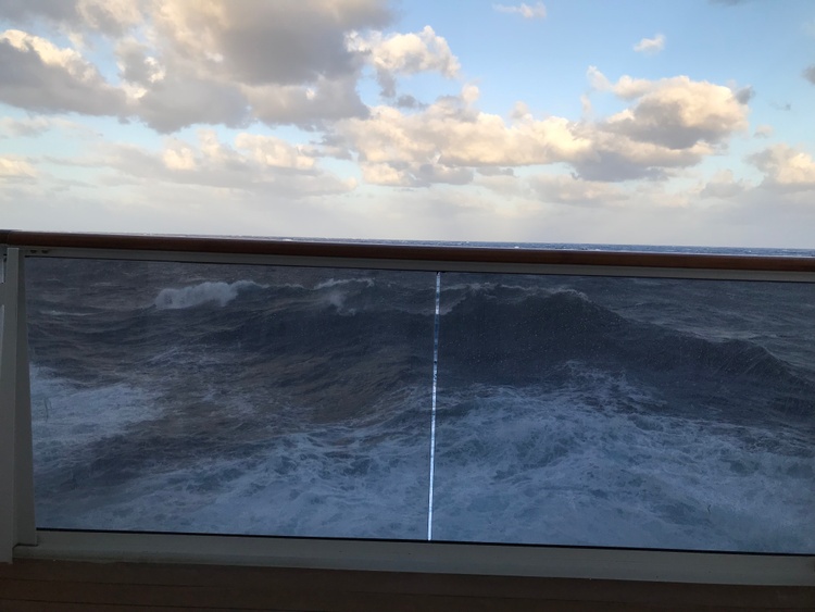 HERE ARE SOME PHOTOS FROM MY ROUGH SEAS CRUISE. THE ONES TAKEN FROM THE INSIDE IS BECAUSE I COULD NOT GET MY BALCONY DOOR OPEN. THE OTHERS WERE TAKEN AFTER i THREW MY WHOLE WEIGHT AGAINST THE DOOR AND BARELY GOT IT OPEN AND SNAPPED PHOTOS AND VIDEOS. I GOT MANY. i WANT TO POINT OUT THAT I WAS ON DECK 6, AND THE WAVES WERE WASHING OVER MY BALCONY. ALSO WE WERE VERY LUCKY TO BE ABLE TO DOCK IN TAMPA YESTERDAY AM. I WAS TOLD THAT A CRUISE SHIP FRIDAY WAS SENT TO PORT CHARLOTTE AND ANOTHER FRIEND TOLD ME SHE HEARD ON TV YESTERDAY MORNING THAT A CRUISE SHIP WAS SENT SOMEWHERE ELSE YESTERDAY AM. SHE WAS HOPING IT WASN'T MINE. IT WASN'T. WE ARRIVED LATE, BUT THANKFULLY IN TAMPA.