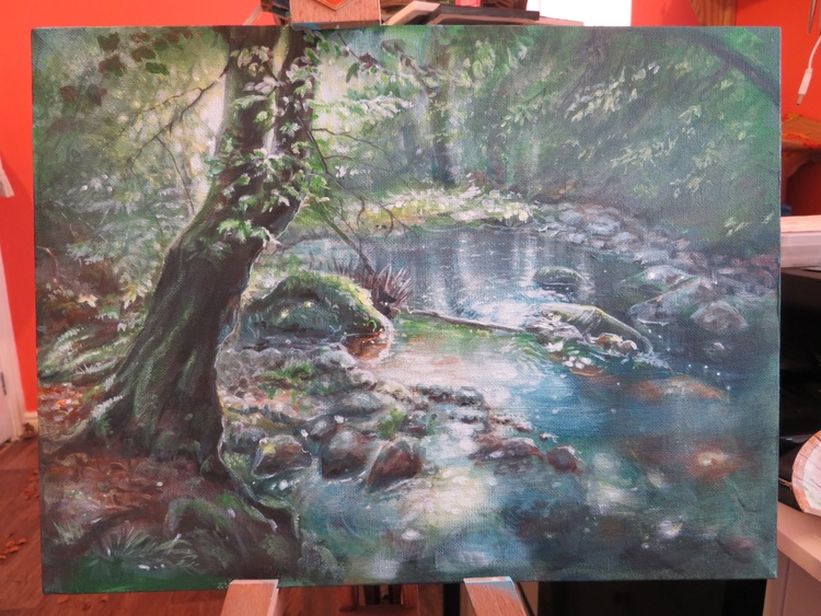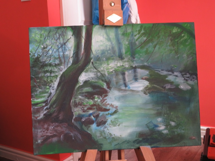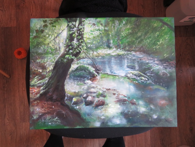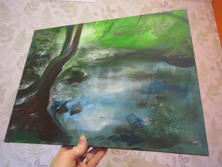 Inspired by a beautiful dingle in Wales and painted in acrylic on stretched canvas, by St Helens artist Elizabeth Grima aka Little Liz Happy Art is 'A place to be'