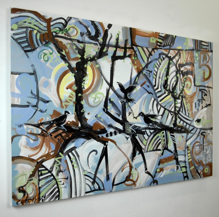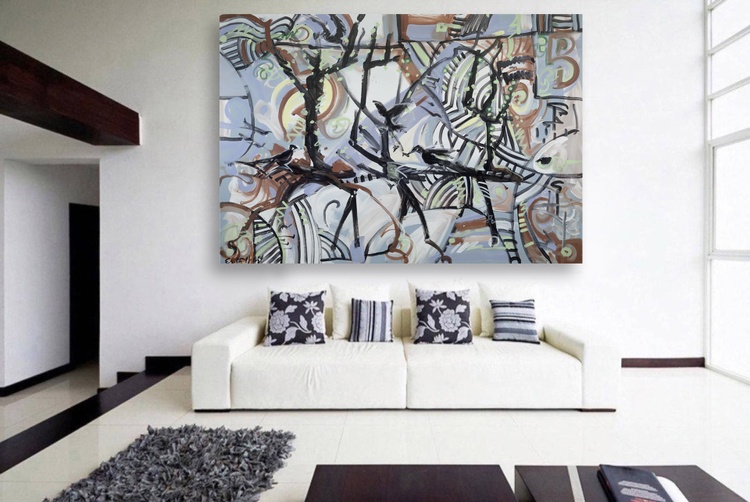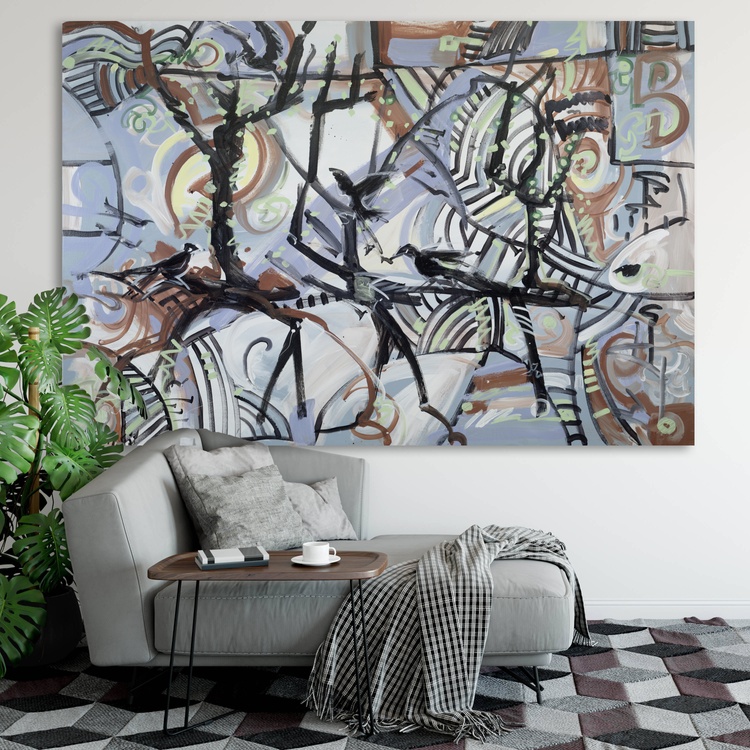 Huge Abstract Vineyard Landscape ORIGINAL Painting 48" x 72" Modern Minimal Art Original Elizabeth Mukerji Wolf Run Ranch Acrylic Blackbirds