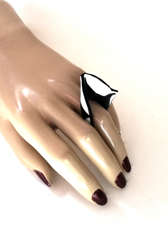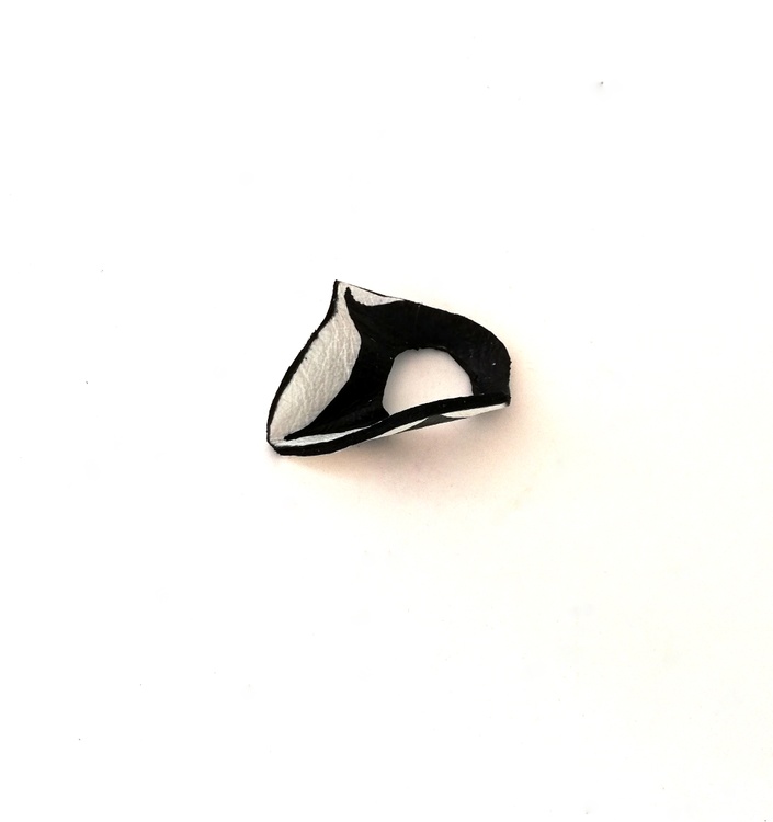 Recycled leather ring - white / black