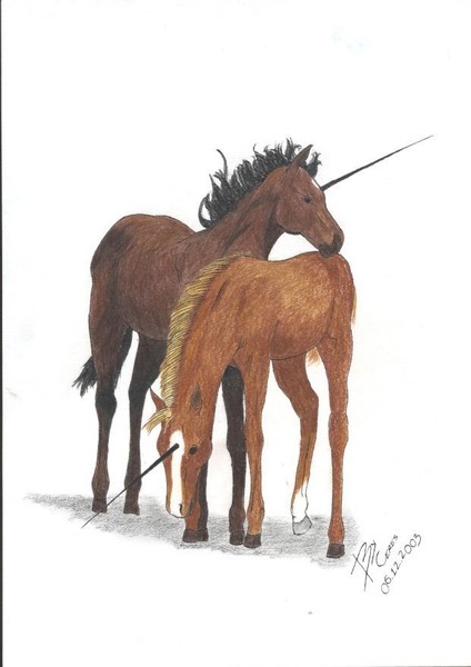 Two little unicorns. A lightbrown and darkbrown. Aren't they sweet? :D