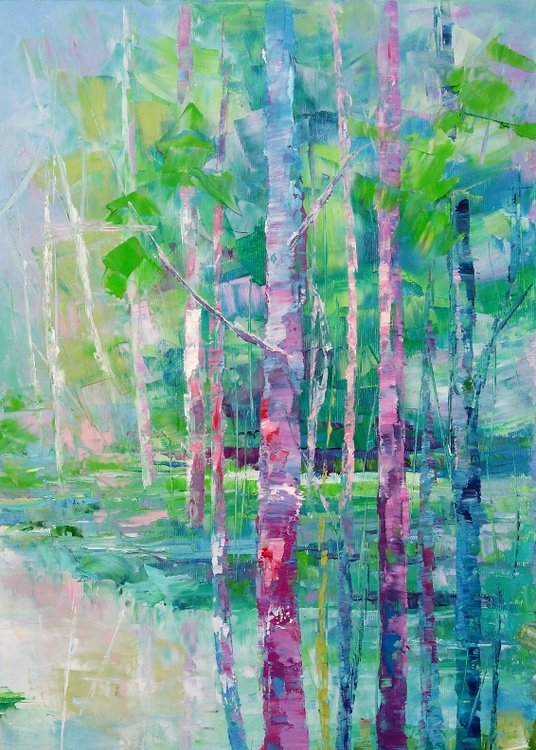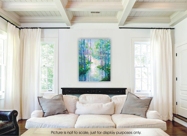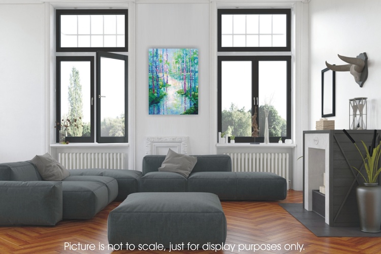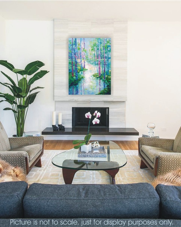 The spring season gives a pictorial palette of colors. Vivid color nuances are floating in the air and reflecting in tree trunks and water surfaces. There is kind of magic in springtime sceneries, feels like the Nature is finally revealing her long-time hidden secret, and gives promise for warmth and abundance. I love painting spring landscapes. I can see all the colors the Nature is carefully preparing to embellish the Earth and its creatures I can see the bold blues and pinks. I can see how light is pulling out the warm hues that objects are keeping inside. I dedicate to these beautiful time of the year this impressive and colorful painting. This original oil painting is done on stretched cotton canvas. Size 60x80x2cm Sides of the painting are painted so it is ready to hang. The painting will be sent safely packed within 4 working days after the purchase. A certificate of authenticity will be enclosed. *** please bear in mind that colours may slightly vary between the actual original painting and the way it looks on your screen due to different monitors settings***