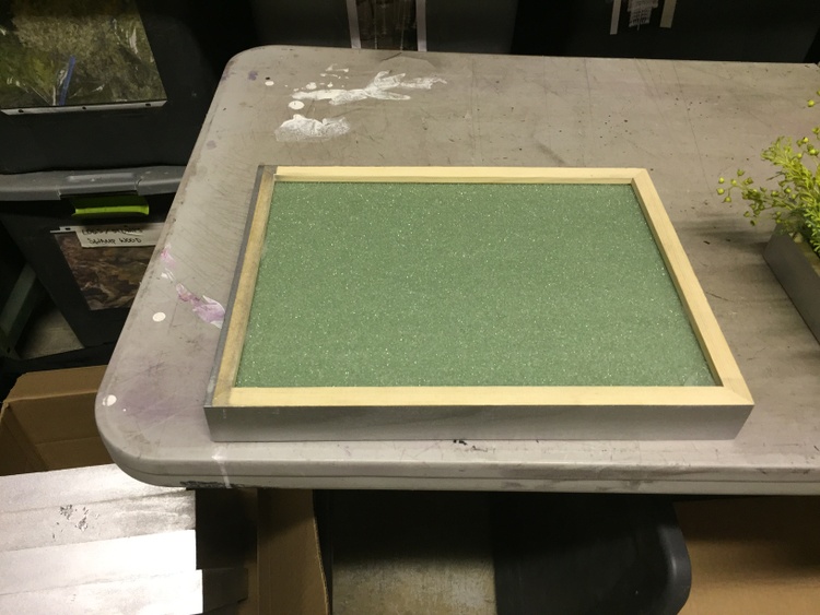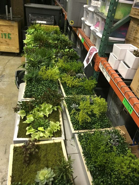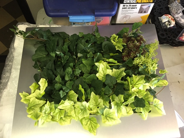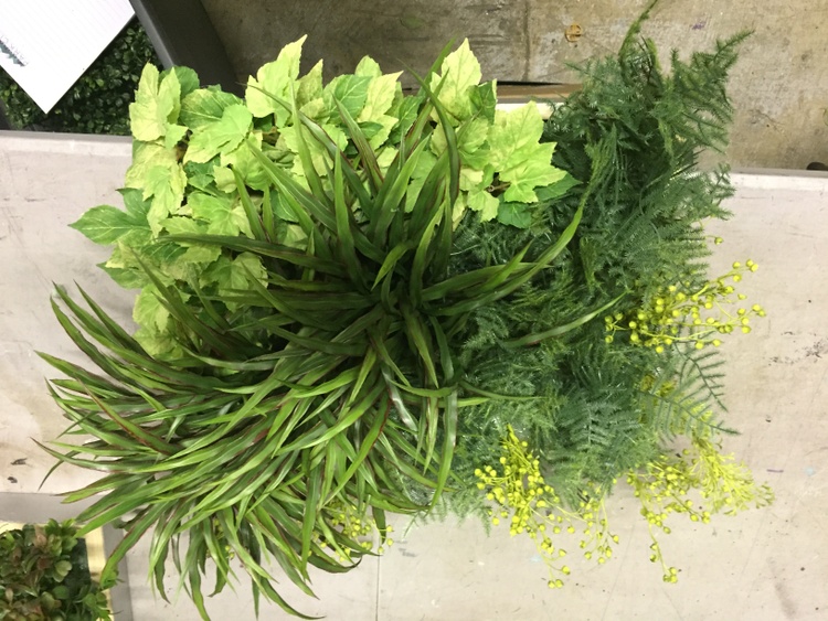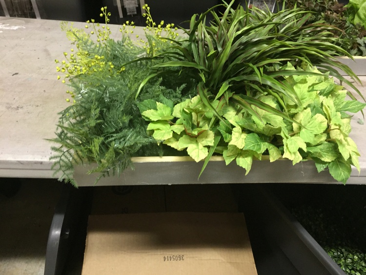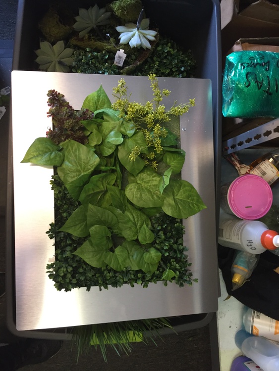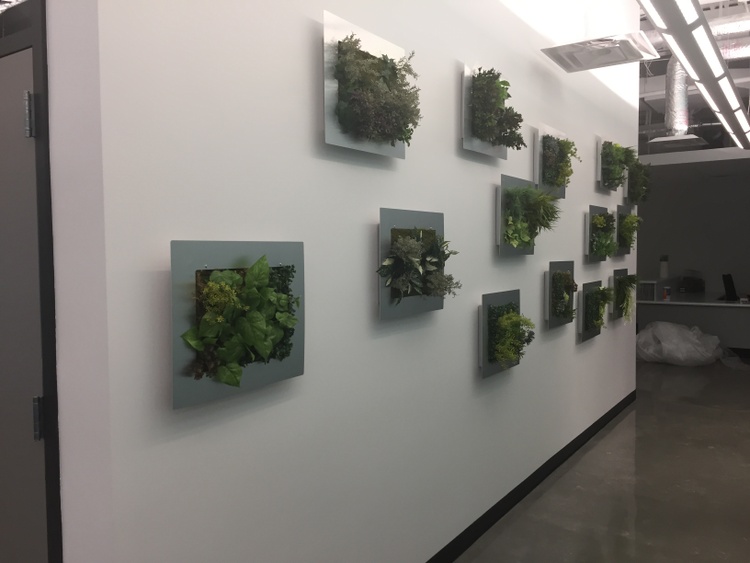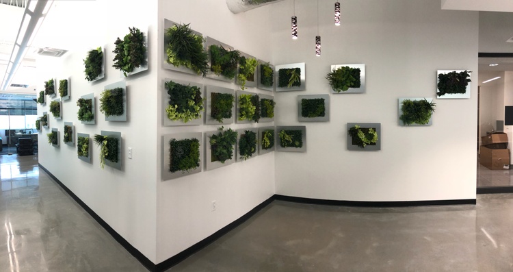 Aluminum framed art work made of artificial greenery and displayed in corporate office