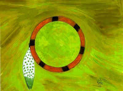 ACRYLIC ON WATER COLOR PAPER 9"X12" A MEDICHINE WHEEL ,COPYRIGHTED 1999 BY BEN 3EAGLES/SHAMAN