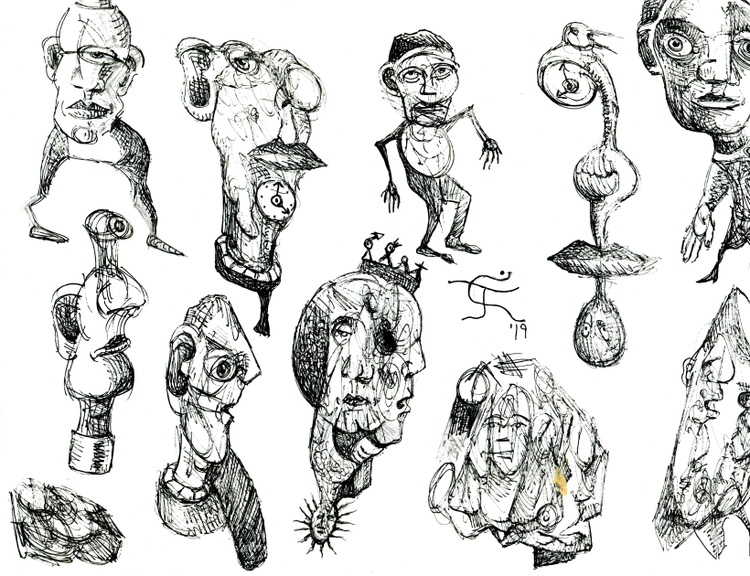 Weather here in Austin has been 'interesting' with lots of rain, wind and storms this month. We are currently around 7 inches above average for this time of the year. I'm not saying this to complain as this has kept the usual heat and sun at bay, but it has hampered my working on sculpture and photographing outside as I usually do. Also this is my birthday month and I haven't found myself in the mood to paint much. BUT I have finished a sculpture or two and a painting, this painting to be exact. It is a 12 by 16 inch acrylic painting on gallery-wrapped canvas, drawing-based, and as I'm am want to say, another inimitable slice of Original Jones Art as it belches forth here in Austin, Texas.