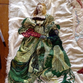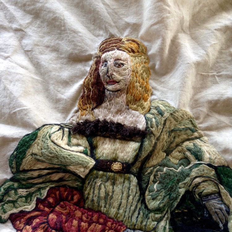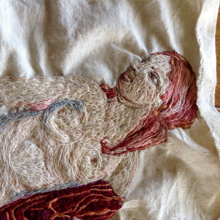A tapestry in the making this is part of the Lucrezia Project, this is a close of Venus