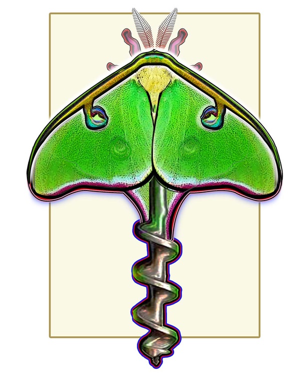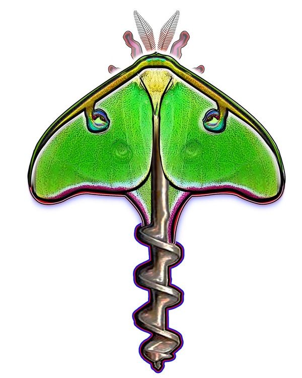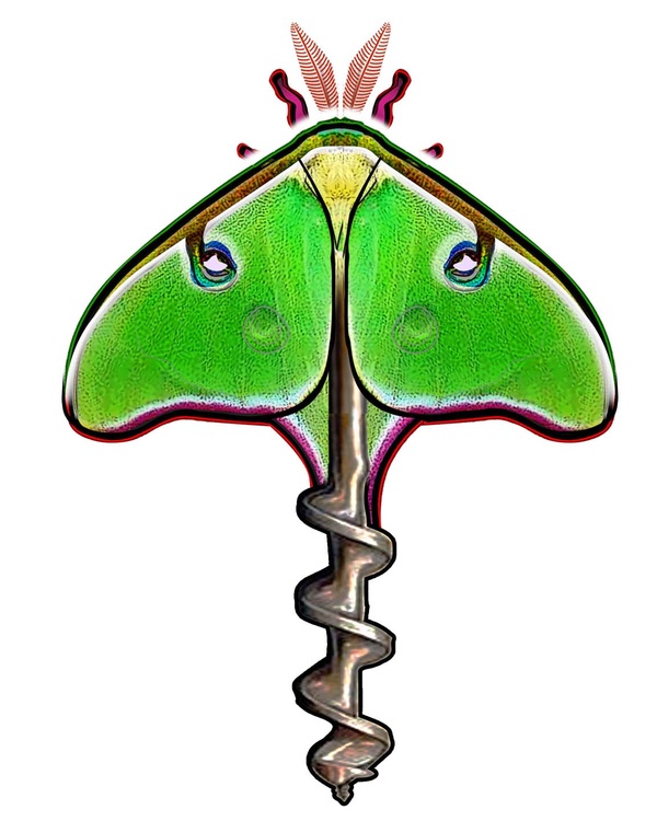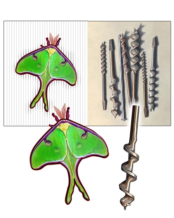 Luna moths are well known among large American silkworm moths & the twist drill bit was invented by Steven Morse of Massachusetts in 1861. One evolved into a significant manufacturing process for the industrial revolution & the other hasn't changed since the 6th day of creation. Photoshop evolved as part of the digital revolution & enables images (like this one) to be done with keyboards & electricity.