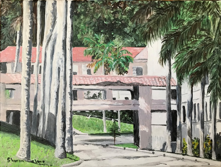 "GORGAS HOSPITAL ANCON CANAL ZONE" Acrylic painting I painted yesterday. Gorgas Hospital took my Mother to Panama. She was an RN & head of the new born nursery at Gallinger Municipal Hospital in Washington DC. It was renamed District of Columbia General Hospital in 1953. Gorgas Hospital sent out a call to RNs in the US to come work for them. My mom answered that call along with Henri Skeie & a couple other RNs at Gallinger & they remained close life long friends unti each one's death.