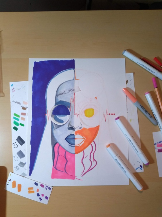 2020 vision/futuristic inspired marker drawing on 11x14 mix media