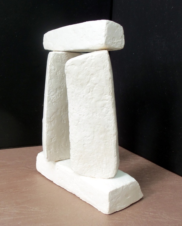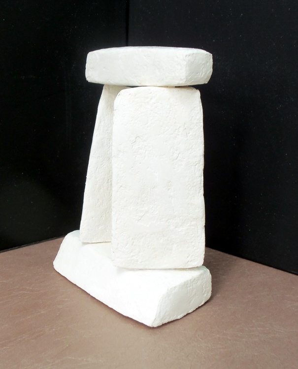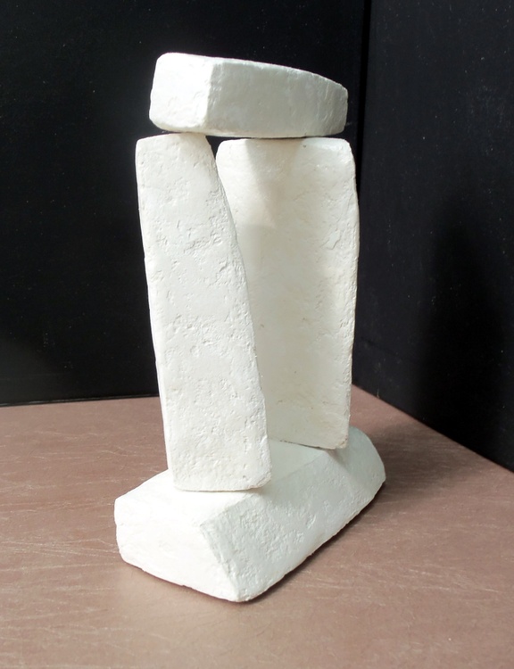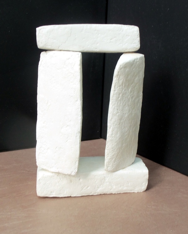 This sculpture uses the last of the ten pieces I covered, sanded and 'found' shapes in. It broke the 3-piece pattern and uses 4. I think its title is apt. Doorway measures 8 inches tall, 5.5 inches wide and 2.5 inches deep. This is probably Original Jones Art looking for a doorway to someplace else here in northwest Austin, Texas.
