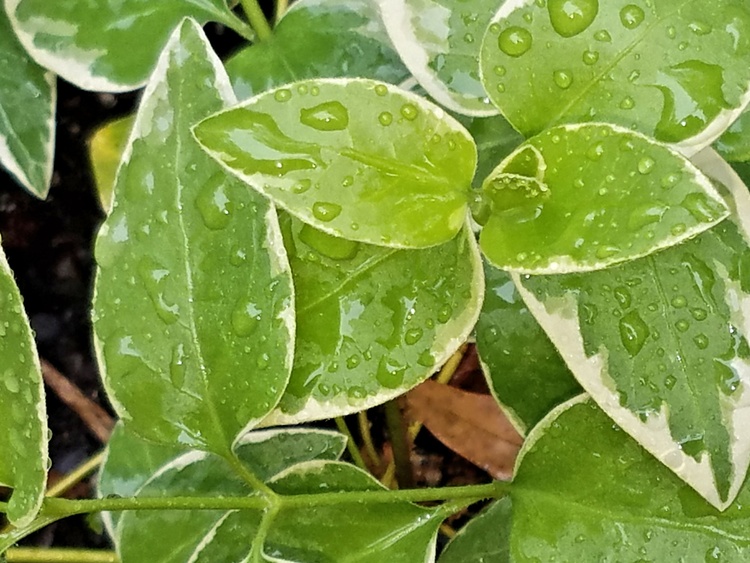SINGING IN THE RAIN RAIN DROPS KEEP FALLING,,,,,Beautiful crystal chain of pearls on the leaves Drop by Drop ,pitter pater on on each leaf as it falls to the ground,It was a wonderful down pour ,the the warm Sun,wow ,,,,everything beautifully washed away leaving everything Spectacular Clean .Feel the warm mist off the Flowers ,Enjoy there Beauty.Debra Kott 21 Apr 2020