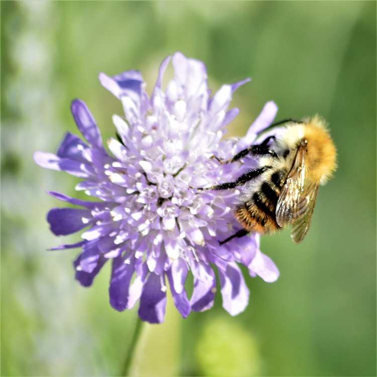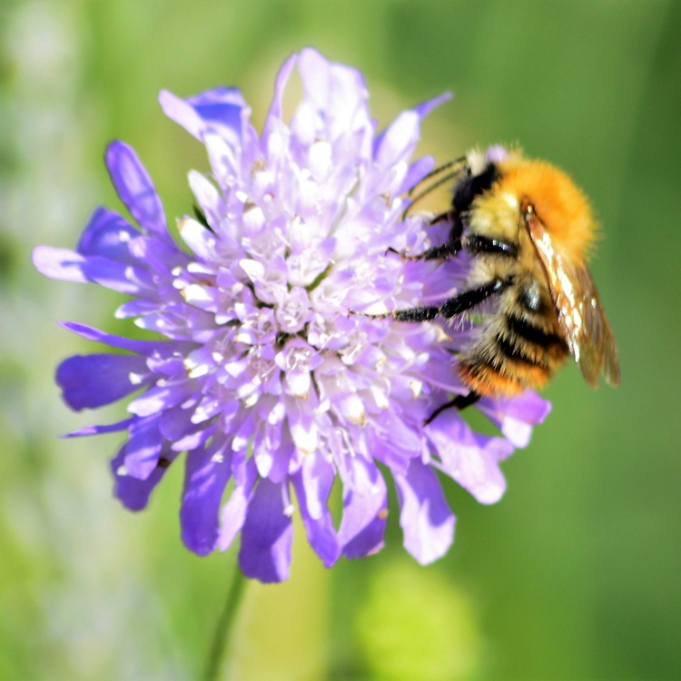 HoneyBees re very much attracted to these Showy Blossoms ,that look like Pincushions,,,,these hold a lot a nectar & pollen,belongs to our HoneySuckle Family,you would never know that as they look so different,Wonderful Colour ,