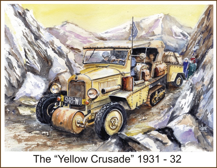 Haughtiness comes before the fall! André Citroën, supported by the great media attention, thanks to the success of the tours through the Sahara (1922), the "Black cruise" through Africa (1924-25) and the "Yellow cruise" through Asia (1931-32). tempted to organize another trip, this time across northwestern Canada. The trip was organized by Andre Bedaux and was undertaken in five of the latest Citroën-Kégresse half tracks. A crew of 17, including Bedaux, his wife and ... his mistress, left Edmonton on July 4, 1934 and launched an attack on the Rocky Mountains. They soon faced unforeseen and insurmountable difficulties due to torrential rains, flooding and mudslides. Three out of five vehicles were swept across swollen rivers and the other two had to be abandoned on August 16, engulfed in mud. The fameless return took place on horseback and by train back to Edmonton, where they arrived on October 24, 1934. Had André Citroën underestimated this trip, insufficiently prepared or were the crew members too snooty to stop the trip in the disastrous weather conditions? This fiasco probably explains why this Citroen cruise is not very well known and there is hardly anything to be found about it. Image size: 260 x360 mm