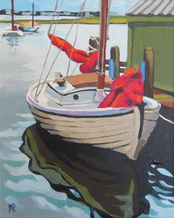 SOLD Sailboat moored on a Gulf inlet. Gallery-wrapped and ready to hang. 10" x 8" x 1" acrylic on canvas
