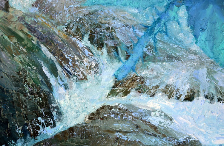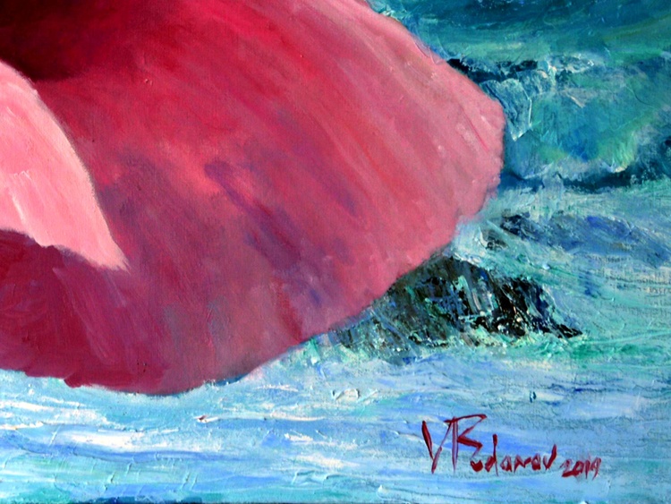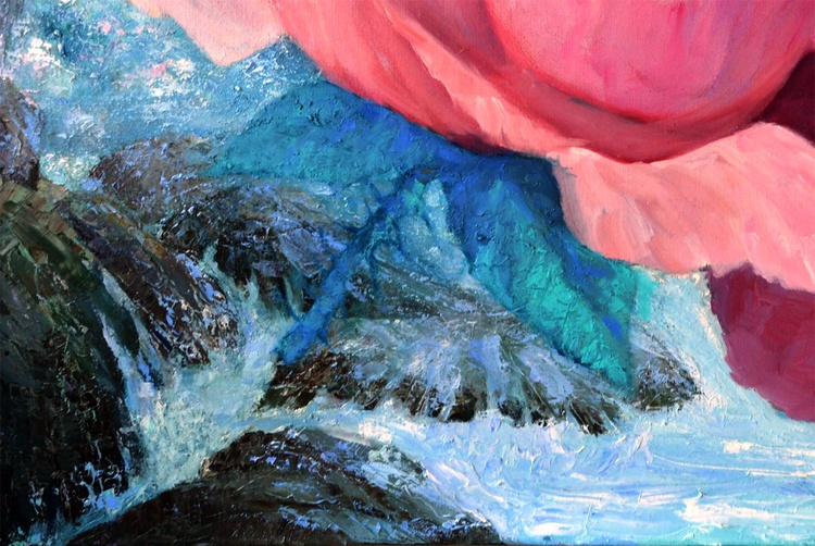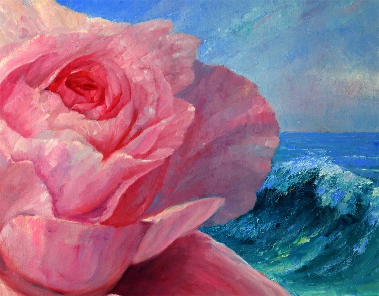 The original work was done with oil paints on a canvas stretched on a stretcher of 80x100 cm in size. It depicts a rose flower ripped off by a gust of wind and flying over the raging sea to the horizon. Made in the romantic style of impressionism. The picture will be a great gift and decoration of your interior.