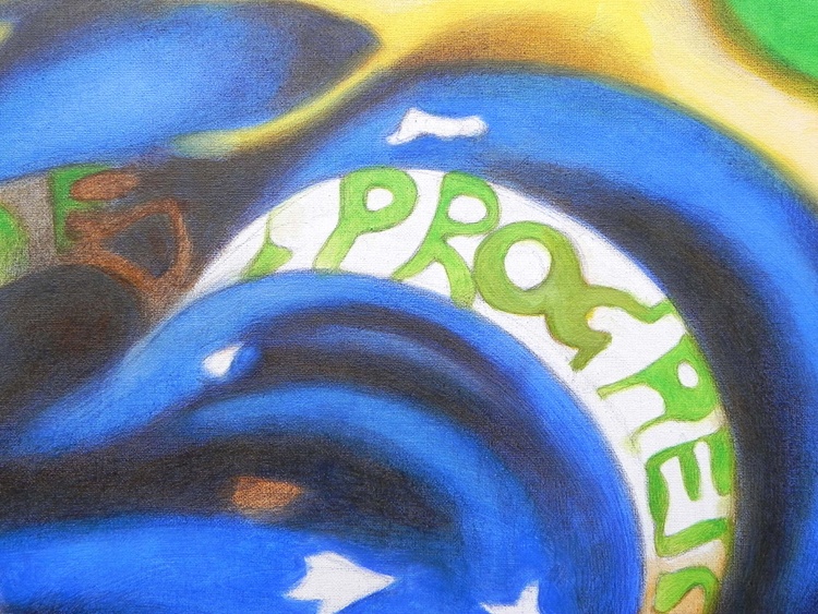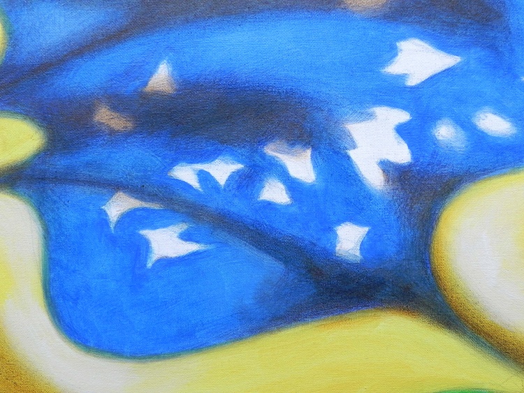 An original piece from the series “Flag”; oil and graphite pencil on canvas; 50 x 80 cm, 2015. Every time that I come back home from a journey or a holiday, I always find some flags among the photographs that I’ve taken. I am particularly fascinated by those flags moved by the wind, where the geometries of the coloured tissues overlap on the spirals of folds and on the shadows generated by the movement. It’s even better if the flag is old, maybe a bit ripped, marked by the time that they spent to wave, maybe a little faded or dirty from the dusty air they crossed. Some details on the painting: the edges of the canvas are painted in continuity with the surface and the canvas can be hanged without frame. The finishing of the painting is made with protective varnish. Certificate of Authenticity is included, with signature of the artist on photograph. The painting is signed on the back. In case of sale shipping is worldwide free.