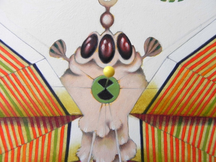 An original piece from the series “Please do not kill butterflies”, pins and oil on paper mounted on a wood panel, 24 x 48 cm, 2019. Original sold. Please, all these dead animals ... Of course, not every one of us can or want to become vegetarian. Sure, in some cases, maybe, the medical experimentation needs them to get results. But we really have to kill them for our frivolous activities? ... Is it necessary to have so many pink pigs die in front of a camera? Do we really need to dissect sharks in formaldehyde, to starve stray dogs tied to a chain in the corner of a gallery, or to make innocent ants go crazy in twisted tubes of plexiglas? To make these drawings, no butterfly was killed. The painting is signed. FREE SHIPPING WORLDWIDE!