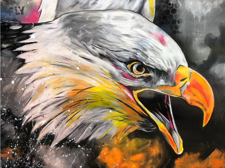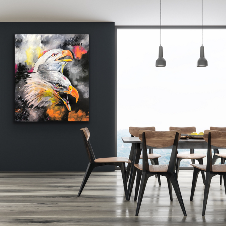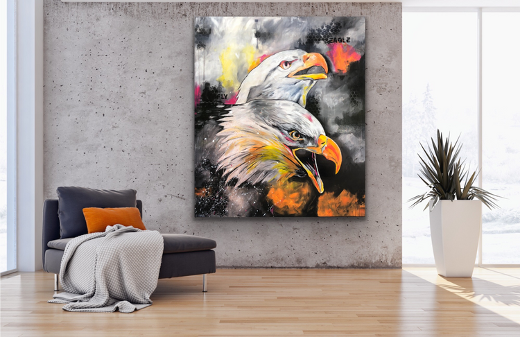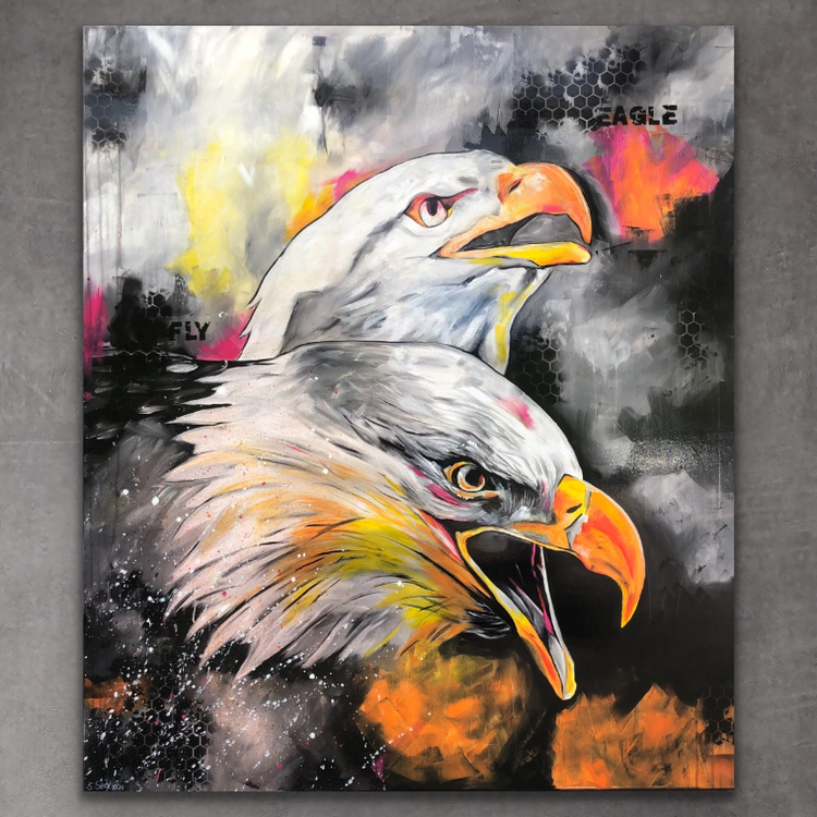 - ART FOR SALE - Gemälde "eagle fly" Unikat Acryl und auf Leinwand/Keilrahmen Größe: 120 cm x 140 cm Werk Nummer 1 meiner kleinen neuen Serie "farbiges schwarz-weiß"...Überwiegend in schwarz-weiß gemalt und farbige Akzente gesetzt. Das Bild wurde im Anschluss mit einer Harzschicht überzogen. So wirken die Farben intensiver und es erhält einen wundervollen Glanz. Ränder bemalt, Aufhängen ohne Rahmung möglich. Durch Digitalisierung und je nach Monitorauflösung kann es zu leichten Farbabweichungen kommen. - shipping world wide, please contact me and ask about the shipping costs -