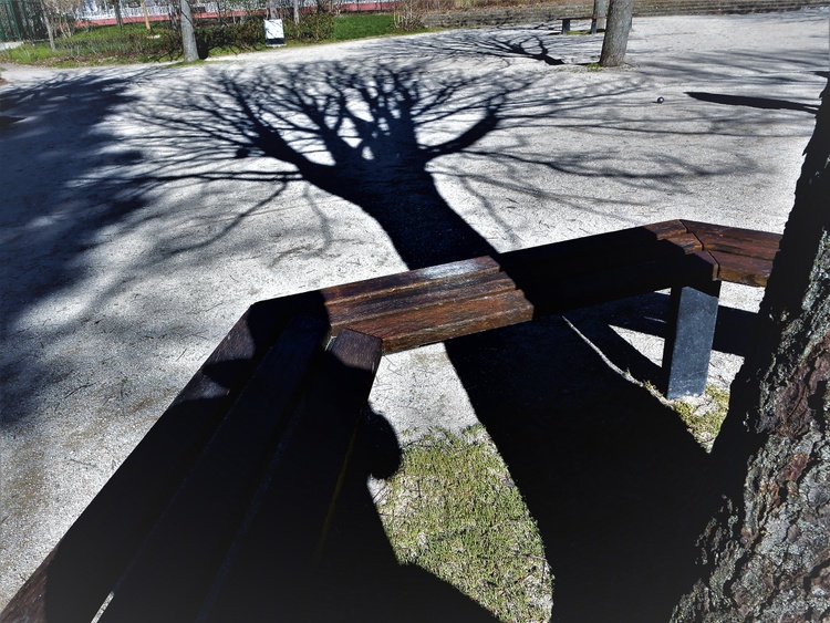 Absolutely Amazing ,wow you sure came here the right time,wonderful array of shadows,every which way,Criss crossing really showing off it's network of branches,now if they where fully clothed with Leaves,it would be All BLACK.,not interesting at all,wonderfull Photo