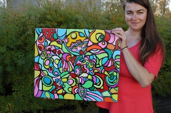 Absolutely wonderful artwork, excellent quality. Made by a talented artist. Linen canvas, no frame needed, ready to hang. Gorgeous! It is so colorful! I have made it with lots of inspiration. My colorful doodles are authentic. They remind something sweet, melting, and soft. Wonderful decoration for your home! Colorful acrylic abstract :) linen canvas does not need a frame, ready to hang.