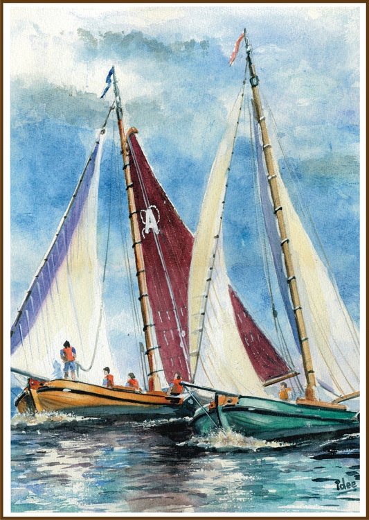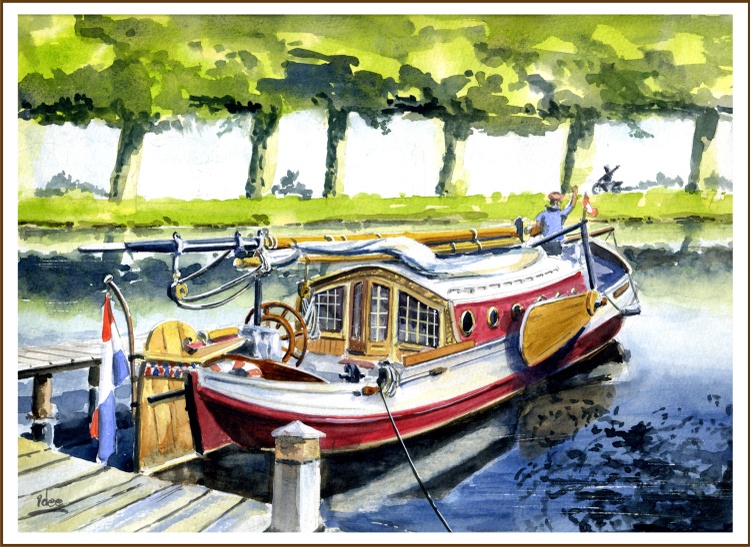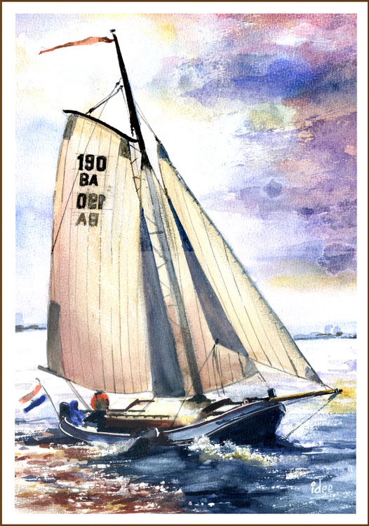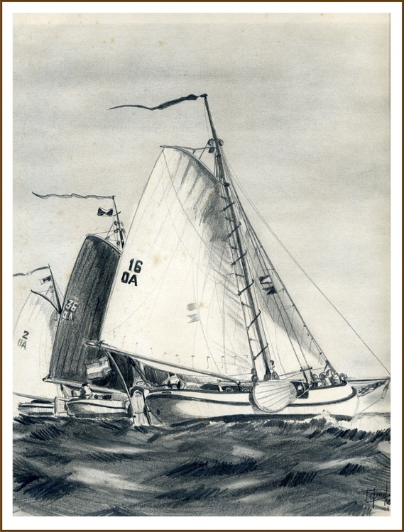 The first lemsteraak of which there are drawings, was built in 1876 by the shipyard De Boer from Lemmer. Originally, the barge was intended as a fishing vessel on the Waddenzee and the Zuiderzee. It was mainly used to fish for herring, although the actual fishing was done with herring rafts. The barge was used for transport and storage of the fish, this was provided by a (covered) bun on the foredeck, which could be up to 2.5 meters in size. Because of its speed, the barge was also used for the transport of other (live) fish, mussel seed to Zeeland and mussels from Zeeland to Belgium. With its high bow the lemsteraak could also handle high waves and as a result they were used early in the 19th century for the transport of live eels to London, where the barges even had their own berth. The watercolor shows an originally built lemsteraak, but from the beginning of the 20th century these vessels were also built as beautifully decorated yachts.