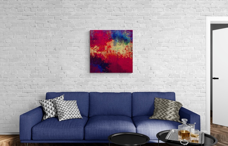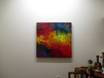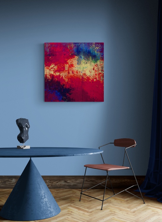 La Trinita #3 is a 30 x 30 inch contemporary abstract painting on museum stretched canvas. This color field painting by joseph piccillo was painted in Key West is an exploration of the primary colors. Color as it affects our emotions. Red to me has a primal exciting feel . This painting has an explosion of color both exciting and comforting. #paintingsbyjosephpiccillo #contemporary abstract #modern #fine art