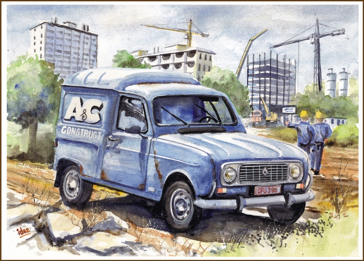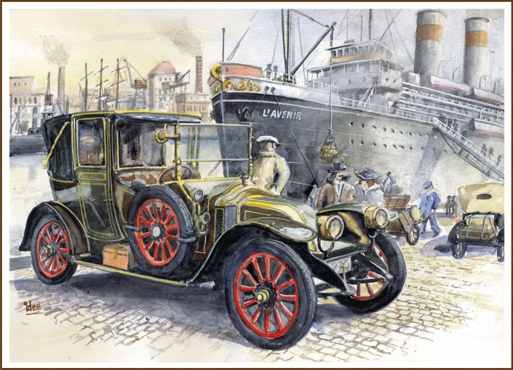 Also called the "Juvaquatre". Intermittently, from the Second World War, produced from 1937 to 1960. With this two-door "no nonsense" car, Renault aimed at the Western European middle class, which was slowly recovering from the aftermath of the war. With its 1000 cc and three gears one could hardly speak of a speed monster. It is striking that the Renault engineers were inspired by the German Opel Olympia for this car. What I personally find special about this car is that I once, as a little boy, took a ride in the front seat with my uncle who owned such an old car in the late fifties, and ... that it was the first time in my young life was riding in a car !!! Image size: 260 x 360mm