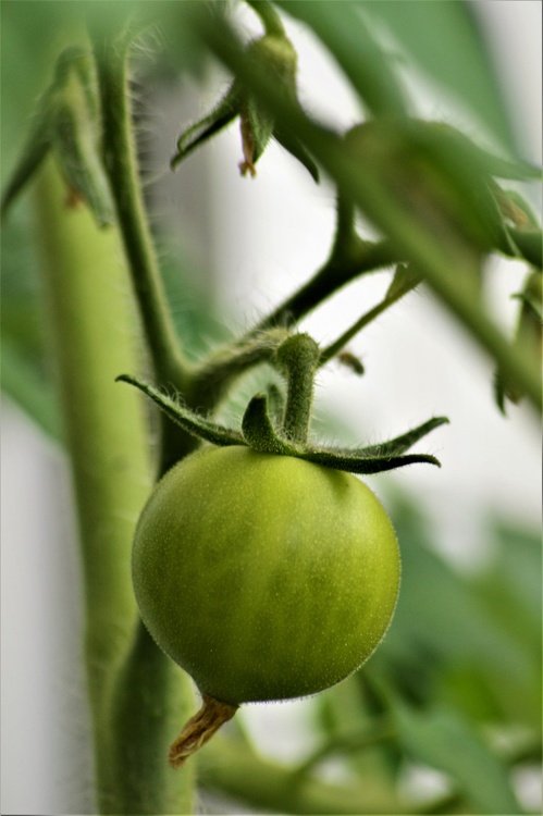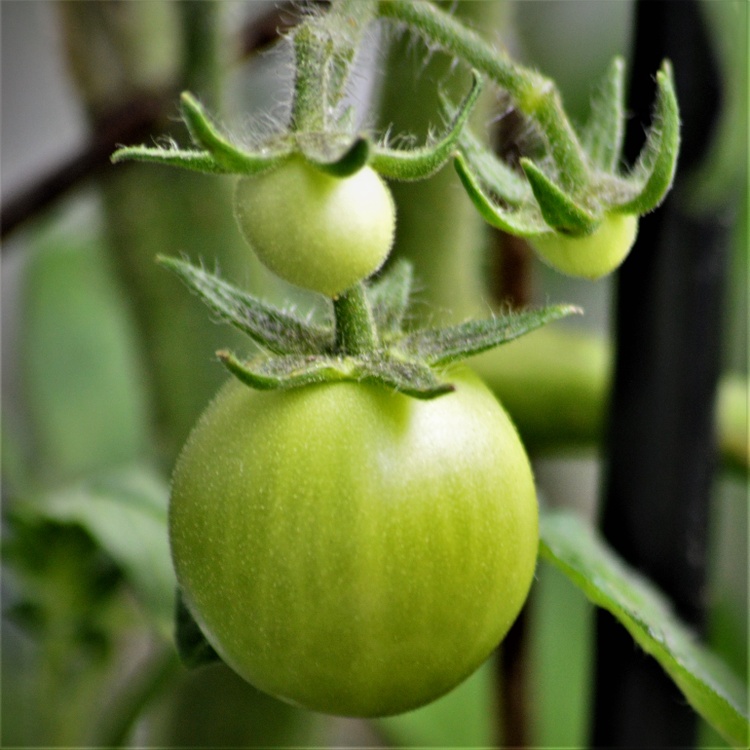 GREEN TOMATOES AND FLOWERS .