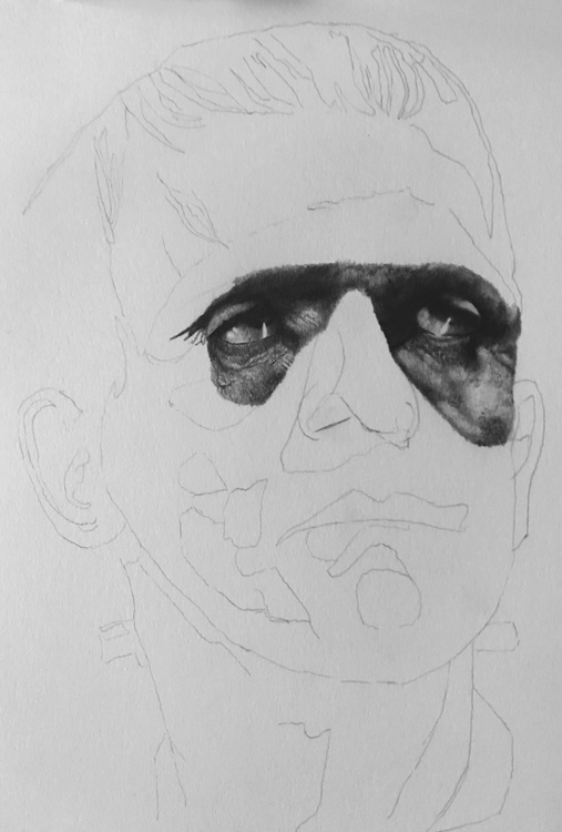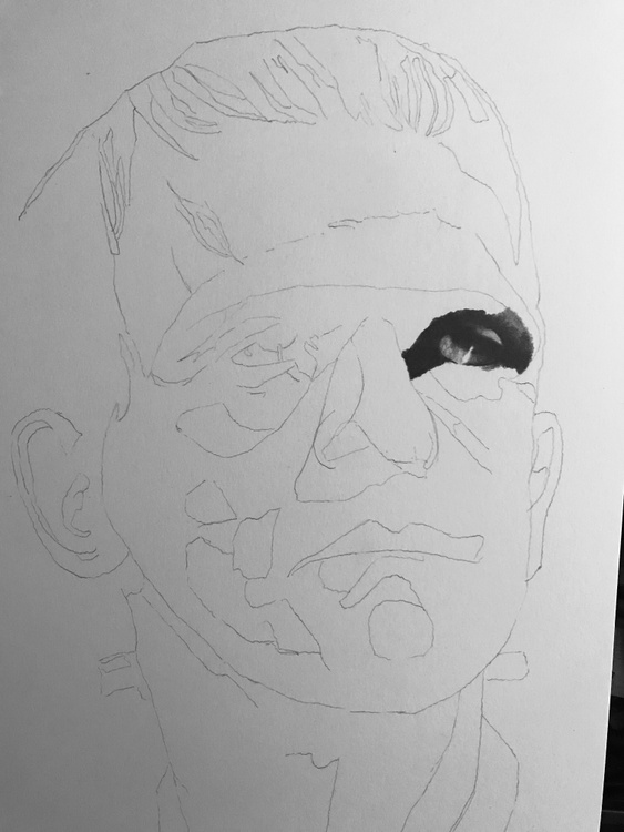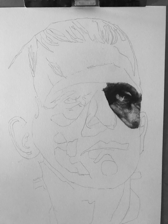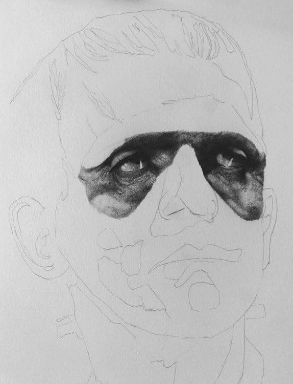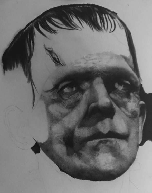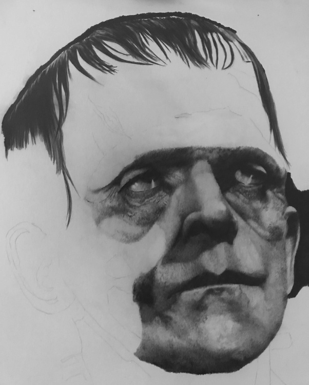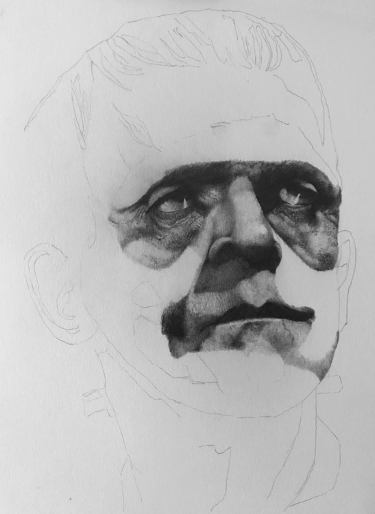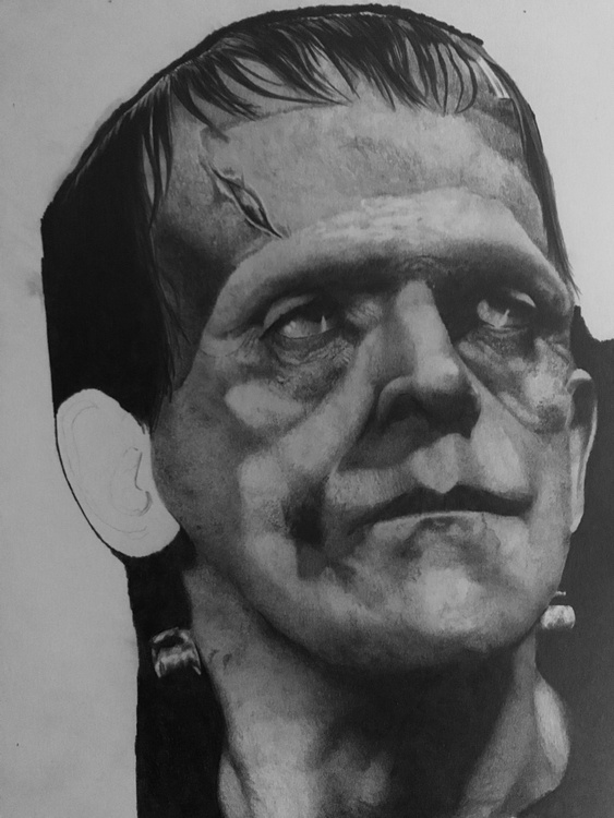 Hand drawn in graphite pencil. Drawing of Boris Karloff as Frankenstein's "Creature". $ 200.00