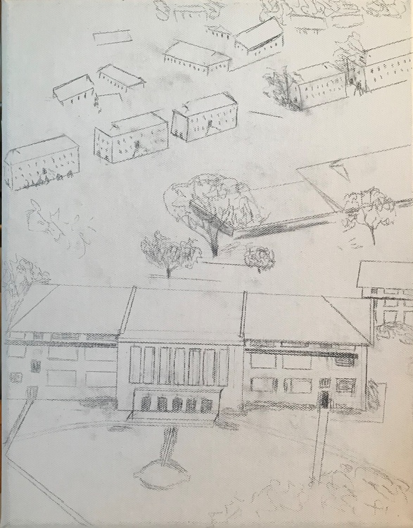 Balboa High School Panama Canal Zone. It was an old B & W photo that someone had painted some of the grass wrong colors & the roofs were all white, which I knew was not right. So I painted the colors I knew and grew up with for the first 20 years of my life. I painted a little every day and loved painting this. Many wonderful memories were lived at BHS; I was cheerleader my BHS years and Captain my senior year & designed our cheerleader uniforms. Was queen & in queens' courts, chairman of many committees, on student counsel and on and on. We were the Bull Dogs and our colors were Red & White.