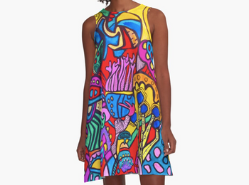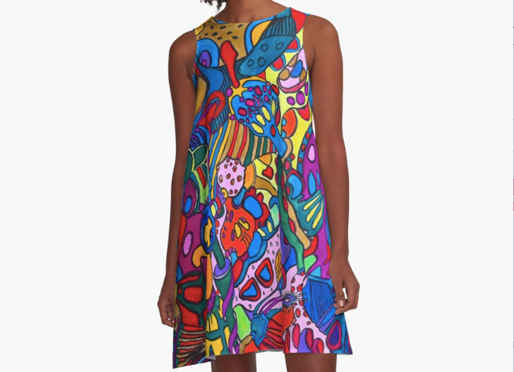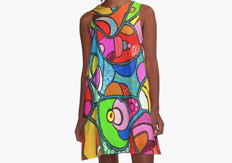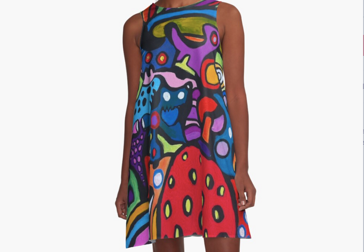 This is a dress with my painting as a design. Features of the dress: Loose swing shape for an easy, flowy fit. Sizes run large, so order a size down from your usual. Print covers the entire front and back panel with your chosen design, by an independent artist. 97% polyester, 3% elastane woven dress fabric with silky hand feel. Note that due to the production process, the placement of the print may vary slightly from the preview. A-Line dresses are made in the USA. DIRECT LINK TO ALL DRESSES: https://www.redbubble.com/people/veerazukova/shop?artistUserName=veerazukova&asc=u&iaCode=w-dresses