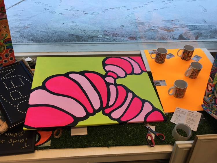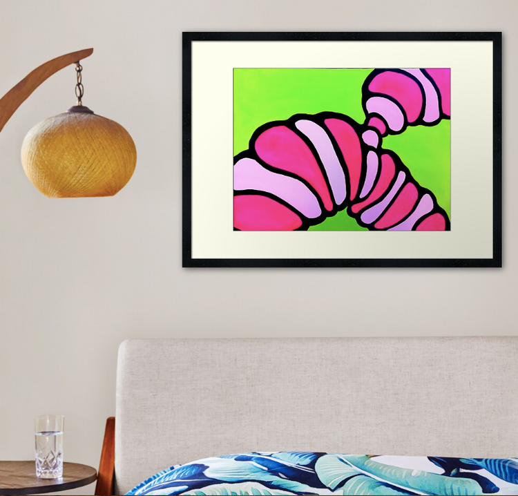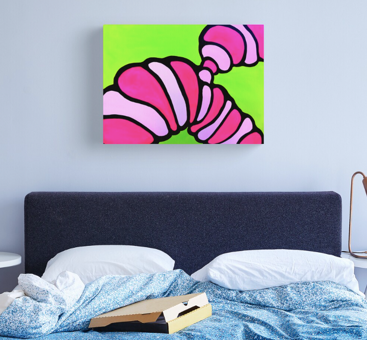 The simplistic yet expressive style of "Croissant" infuses spaces with a joyful atmosphere and endearing cuteness. Its captivating intensity and eye-catching nature draw visitors into Veera's gallery, where many are compelled to explore this art piece in depth.