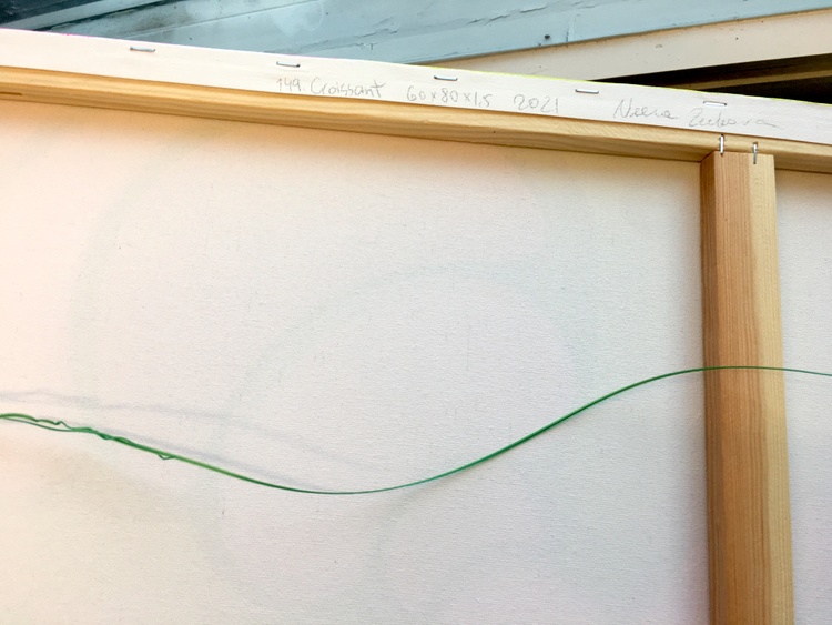 This artwork awakens the imagination, stirring associations through its whimsical and fantasy-driven shapes. The title "Croissant" emerged as the artist contemplated the piece, capturing its essence and the delicate balance between dynamic elements and temperature within the shades.