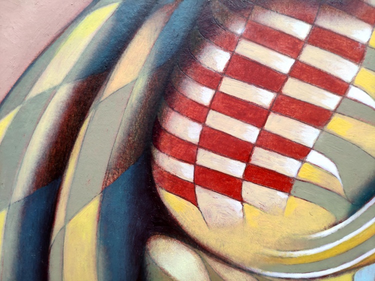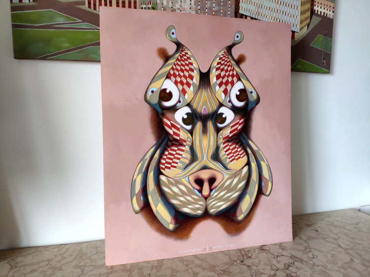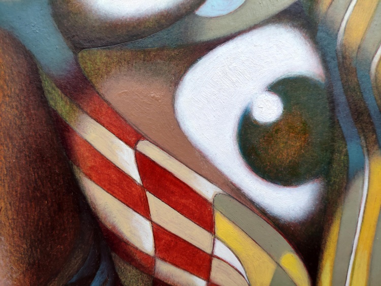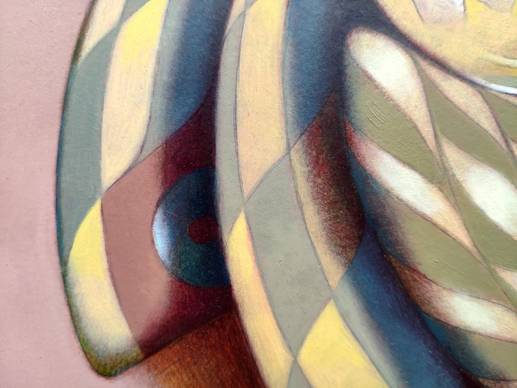 From a series of tribal imaginary masks. oil o thick paper, 50 x 60 cm, 2021. In case of sale shipping is worldwide free.