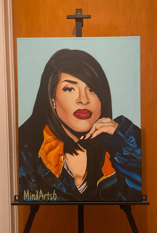 First painting of 2022 of the last great icon Aaliyah 18"x24" acrylic painting #newartwork #aaliyah #blackart #blackhistory #popart #semirealism #newpainting #checkoutmypage
