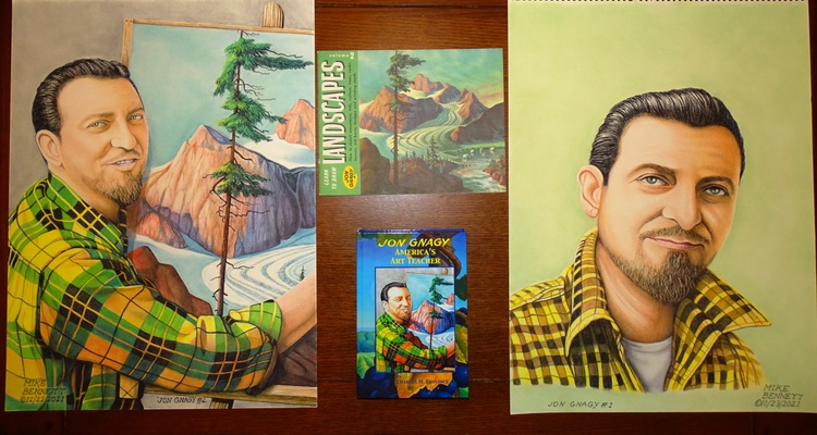 The illustration of Jon Gnagy was done for the first ever book, "Jon Gnagy - America's Art Teacher", about the life of the first ever television artist, named John Gnagy. The book is full of many illustrations by me as well my contributions to two chapters. The book can be purchased on line on Amazon and the author's website: http://the-jon-gnagy-society.free.nf/?i=1