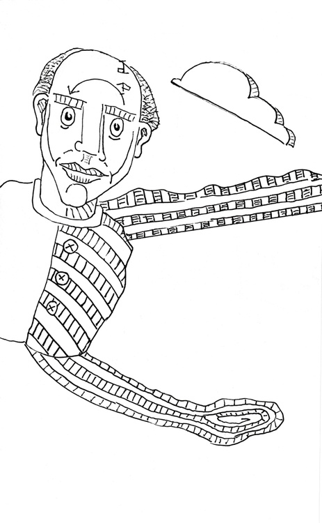We've all made them, mistakes, some silly, some quite disastrous. But we've always somehow survived them, picked ourselves up and kept trudging on. Well, most of us anyway. That's the problem with mistakes, you never know when you'll make the grand finale of errors. the big exploding cigar of misjudgment. This is a 7.25 by 5 inches gel pen with color pencil drawing on medium bond acid-free paper. This is more of that Original Jones Art that some old septuagenarian keeps pumping out as though to rectify an error that may not have happened yet in northwest Austin, Texas.