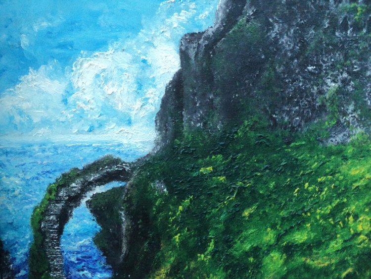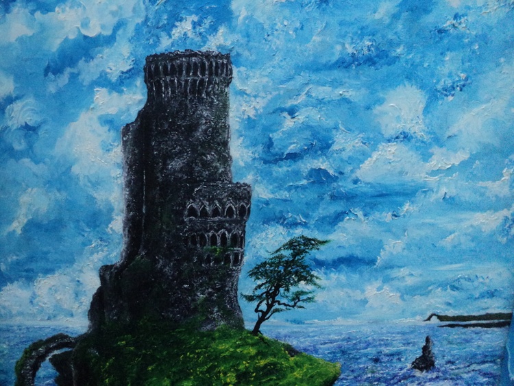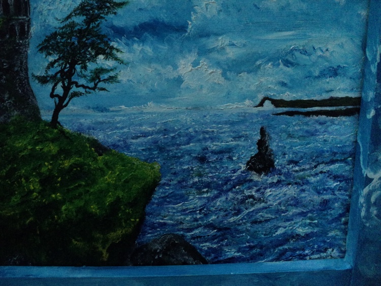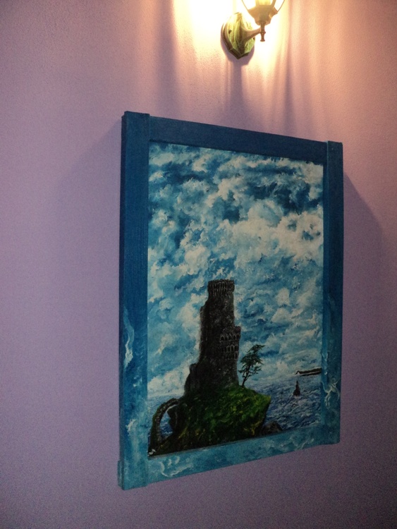 Oil on MDF board, framed. Varnished, as well as the frame made of pine wood and painted. Unframed size: 80x60 cm. Framed size: 86x66 cm.