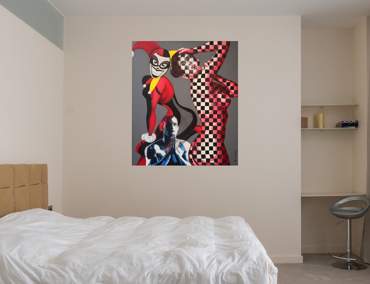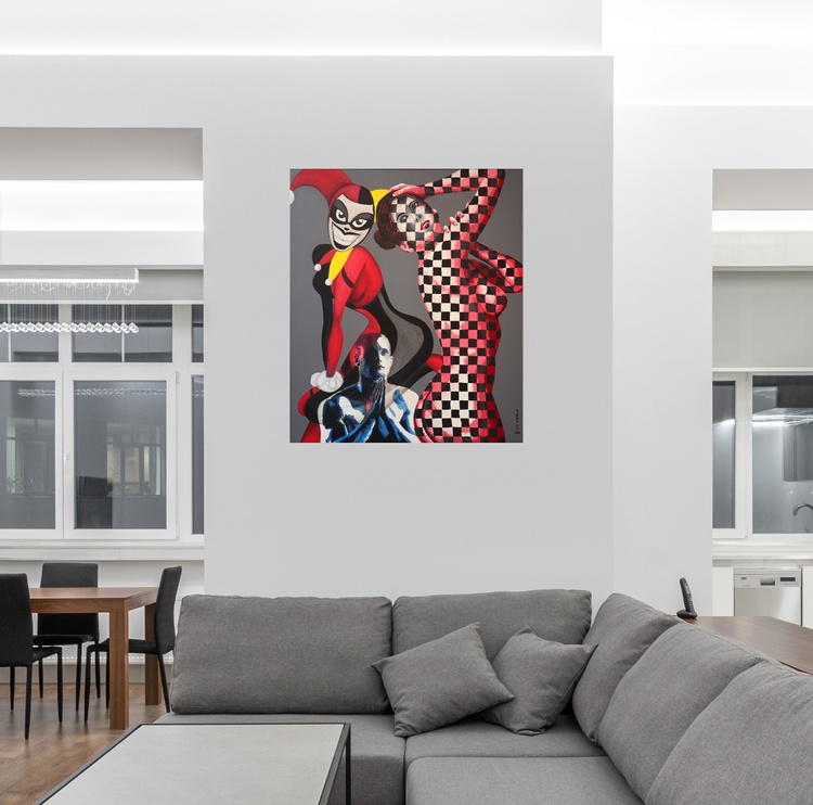 I aim to capture a mischievous moment between the man and his upset lover. The composition portrays the man’s attempts to persuade her and make amends for his actions. This scene of persuasion and reconciliation is relatable to anyone who has experienced the highs and lows of romantic relationships.
